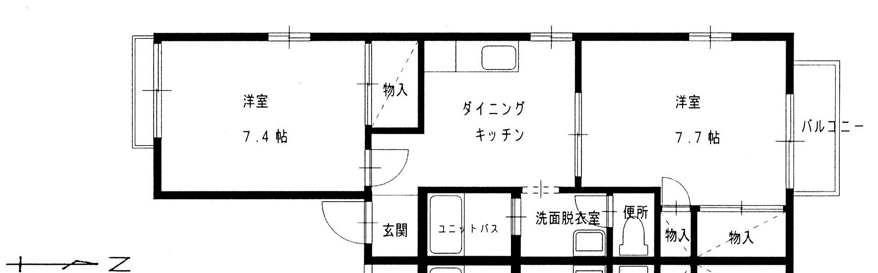 | 間取り | 2DK (洋室:7.4、7.7) 5.3DK |