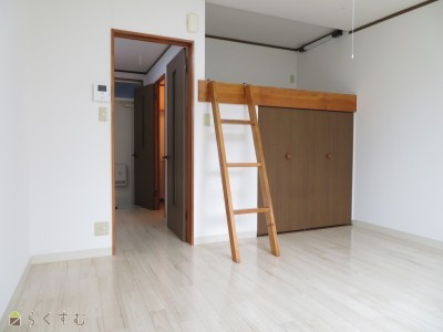 | 設備 | 閑静な住宅街、バス停近く、敷地内ゴミ置き場、ロフト、駐車場1台無料、角住居、IHクッキングヒーター、バストイレ別、温水洗浄便座、エアコン、オール電化、洗濯機置場 室内、TVモニター付きインターホン、インターネット無料、各居室照明、一人暮らし・学生向け | ||