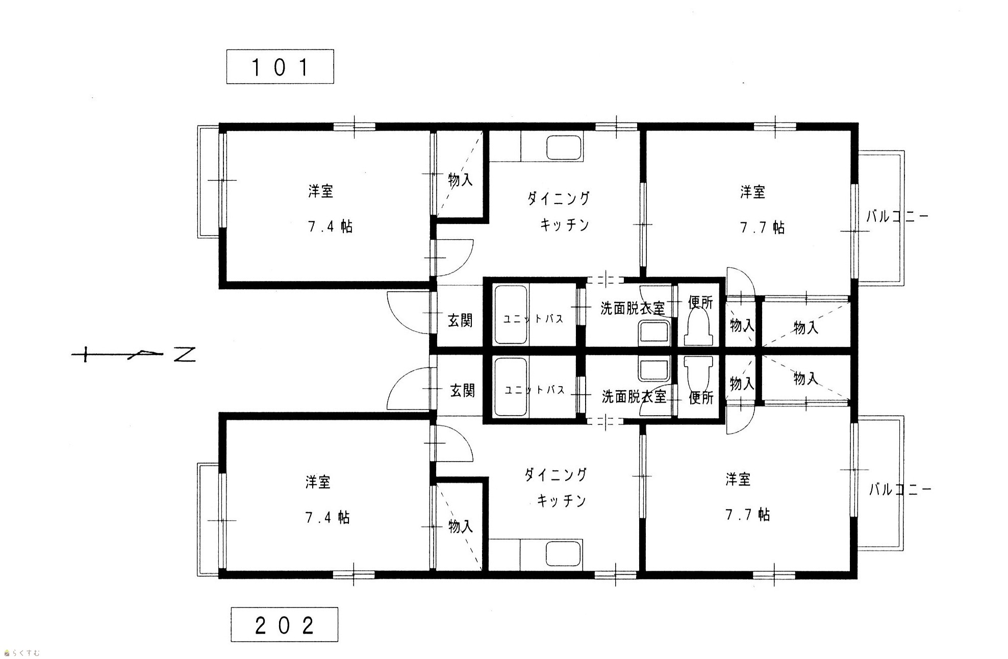 | 間取り | 2DK (洋室:7.7、7.4) DK5.3 |