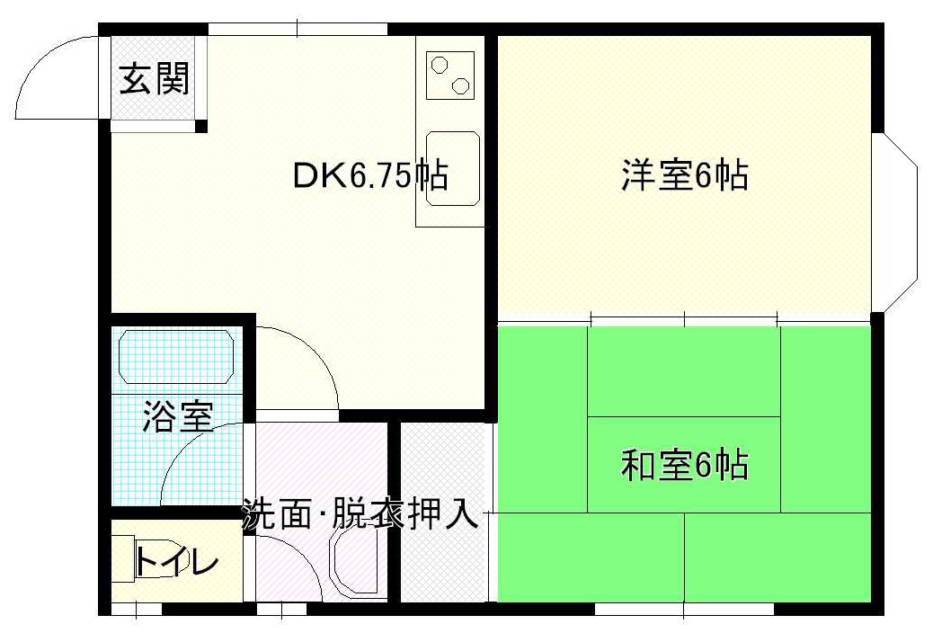 | 間取り | 2DK (和室:6畳) (洋室:6) DK7 |