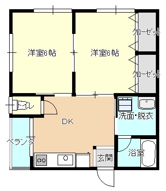 | 間取り | 2DK (洋室:6、6) DK |