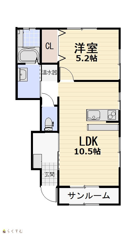 | 間取り | 1LDK (洋室:5.2) LDK10.5 サンルーム |