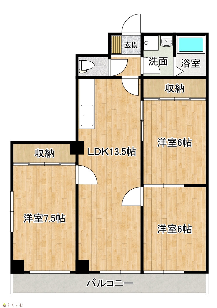 | 間取り | 3LDK (洋室:7.5、6、6) LDK13.5 |