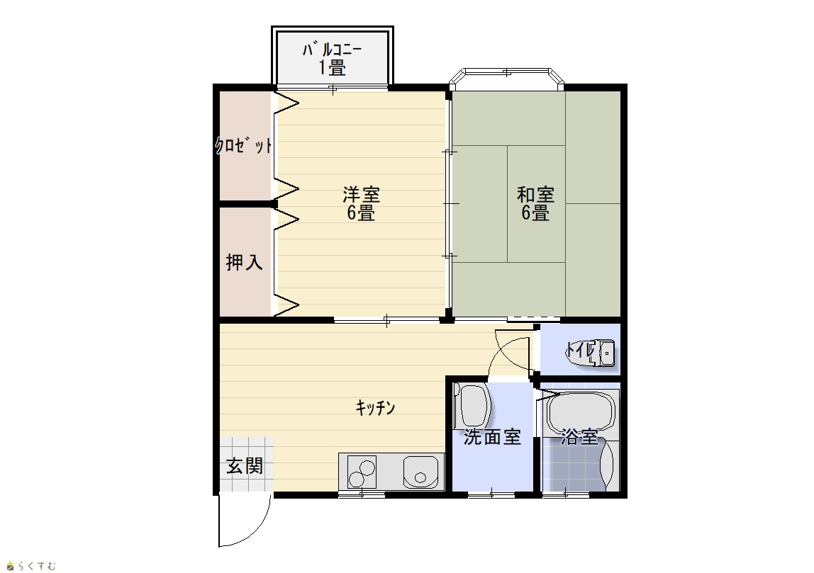 | 間取り | 2DK (和室:6畳) (洋室:6) DK6 駐車場2台付 |