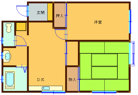 間取り 2DK (和室:8畳) (洋室:7.5)