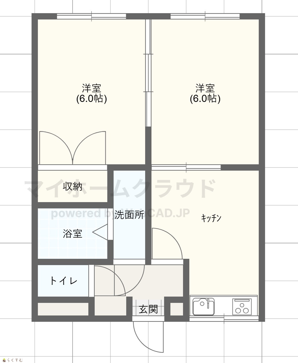 | 間取り | 2DK (洋室:6、6) | ||