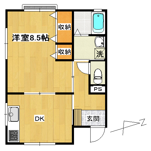 | 間取り | 1DK (洋室:8.5) DK |