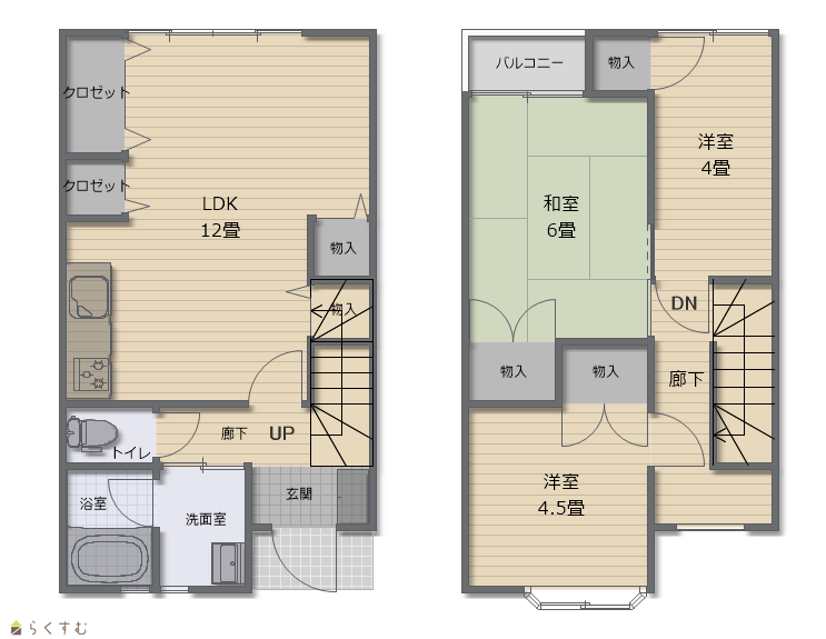 | 間取り | 3LDK (和室:6畳) (洋室:4.5、4) LDK12 |