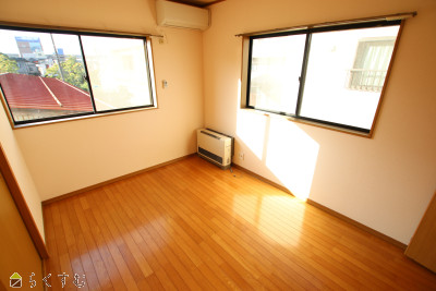 | 設備 | 最上階、駐車場1台無料、角住居、ガスコンロ設置可、バストイレ別、温水洗浄便座、シャワー付き洗面台、エアコン2基、都市ガス、公営水道、洗濯機置場 室内、TVモニター付きインターホン、敷金・礼金不要、保証会社要加入 | ||