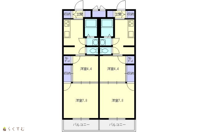 | 間取り | 2K (洋室:7.8、4.4) | ||