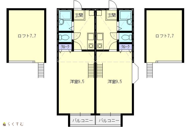 | 備考 | インターネット・Wi-Fi無料仲介手数料無料1年未満解約の場合、賃料2ヶ月分の違約金発生 賃貸保証料:月額総賃料60%(初回)☆広々とした7.7帖のロフト付き 更新手数料 0円/更新事務手数料 0円 | ||