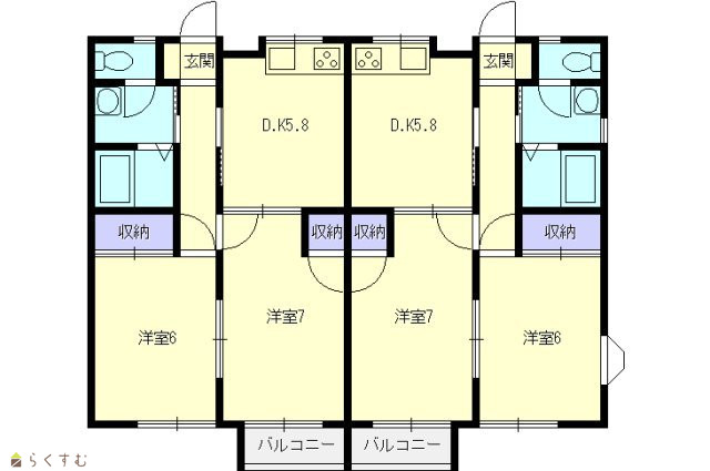 | 間取り | 2DK (洋室:6.0、7.0) | ||