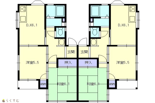 | 間取り | 2DK (和室:6.1畳) (洋室:5.5) | ||