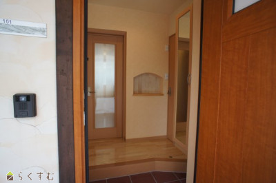 | 設備 | 駐車場1台無料、バストイレ別、追いだき機能付き、温水洗浄便座、エアコン、LPG、バルコニー、洗濯機置場 室内、シューズBOX、BS端子・アンテナ、TVモニター付きインターホン、インターネット 光 | ||