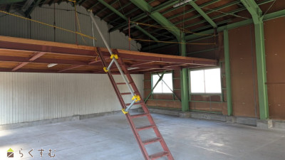 | 備考 | ※倉庫内床は道路上より1段上がっている為、シャッターからの車等の侵入は出来ません。室内梯子は固定されてます。 | ||