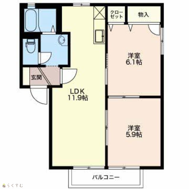 | 間取り | 2LDK (洋室:6.1、5.9) | ||
