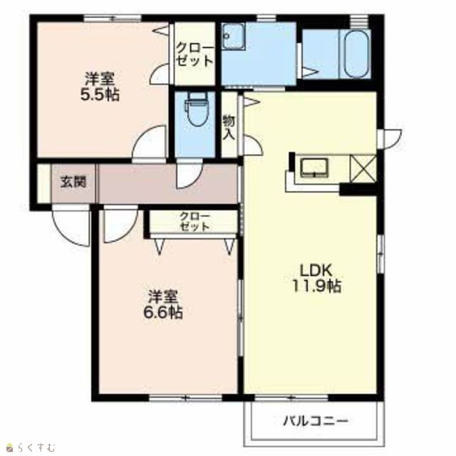 | 間取り | 2LDK (洋室:6.6、5.5) | ||