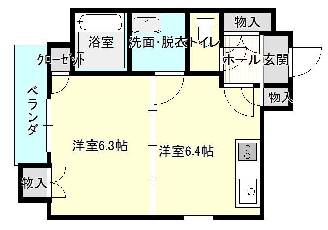 | 間取り | 1DK (洋室:6.1) DK6.1 |