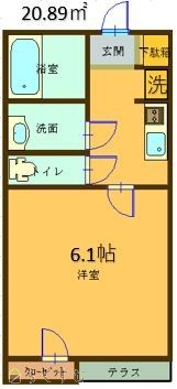| 間取り | 1K (洋室:6) 敷地外徒歩30秒9900円(税込) |