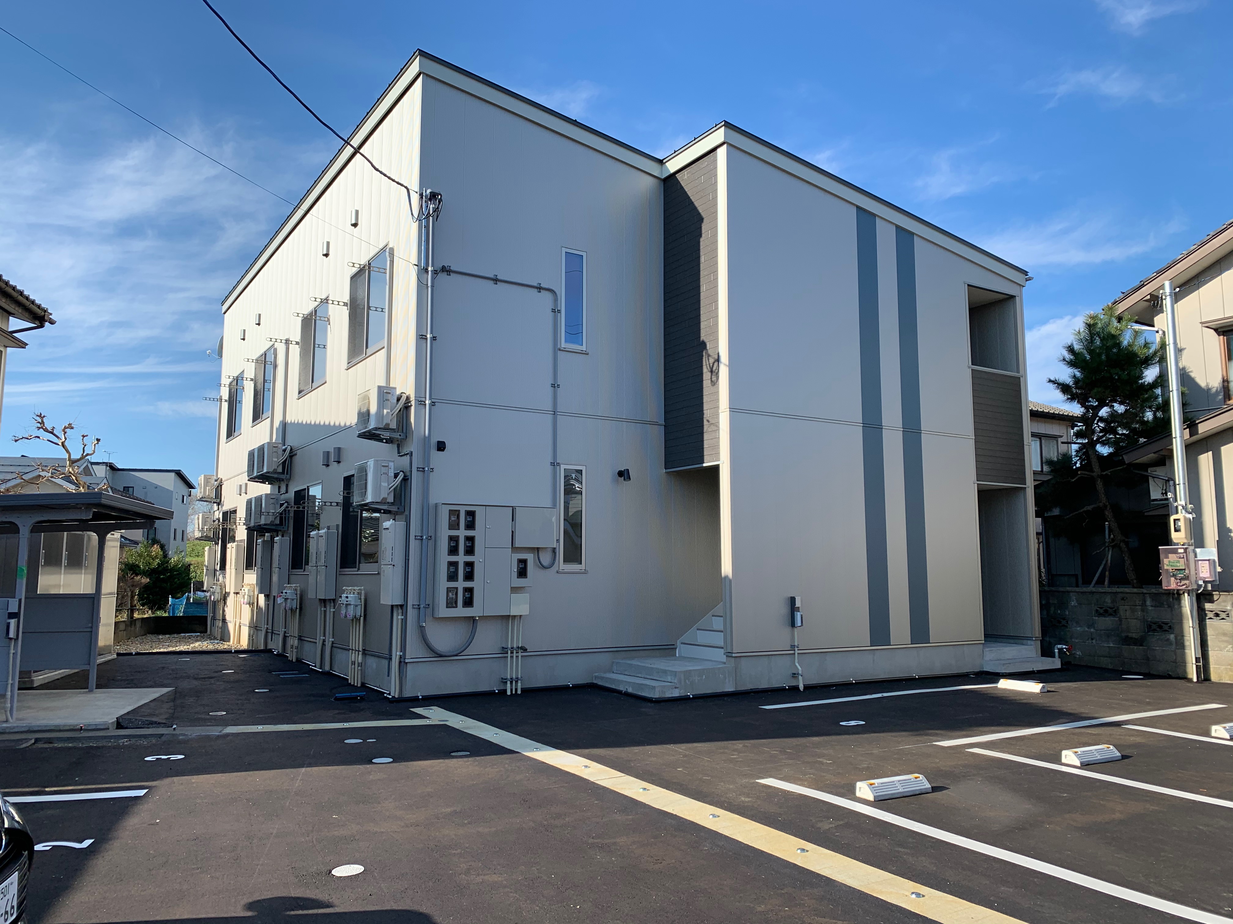 無料インターネット・駐車場1台付き。水道公園まで1分。EV・PHV用充電器2基有り。タイヤも収納できる物置付き。
