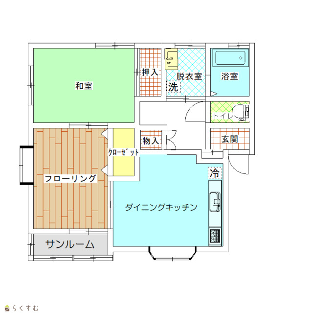 | 延べ床面積51,04㎡とサンルーム併設のため広々とした明るいお部屋です! | |||