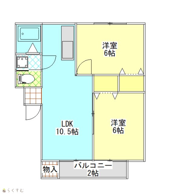 | 間取り | 2LDK (洋室:6、6) LDK10.5 |
