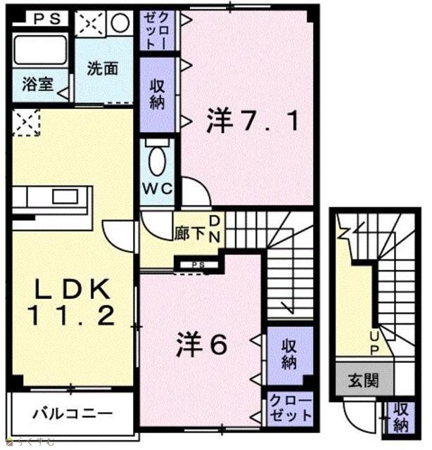 | 間取り | 2LDK (洋室:7.1、6) | ||