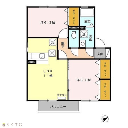 | 間取り | 2LDK (洋室:6.3、5.8) | ||