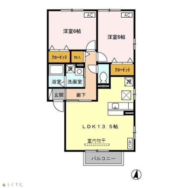 | 間取り | 2LDK (洋室:6、6) | ||
