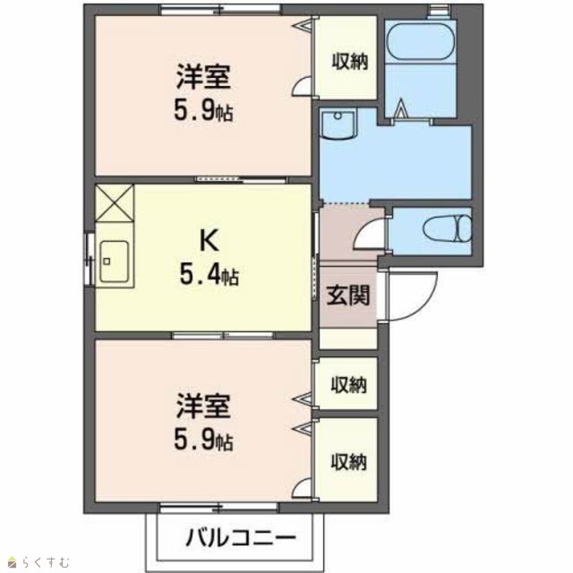 | 間取り | 2K (洋室:5.9、5.9) | ||