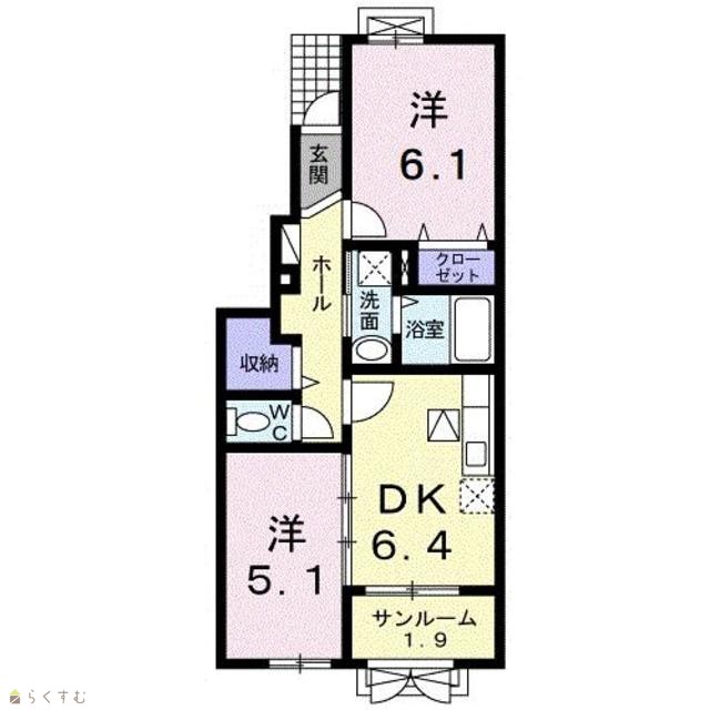 間取り 2DK (洋室:6.1、5.1)