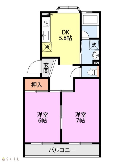 | 間取り | 2DK (洋室:7、6) | ||