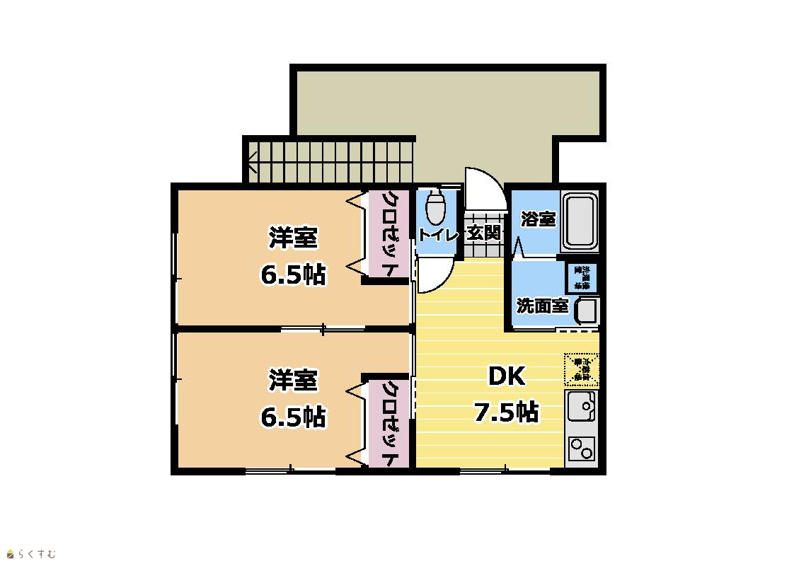 | 間取り | 2DK (洋室:6.5、6.5) DK7.5 |