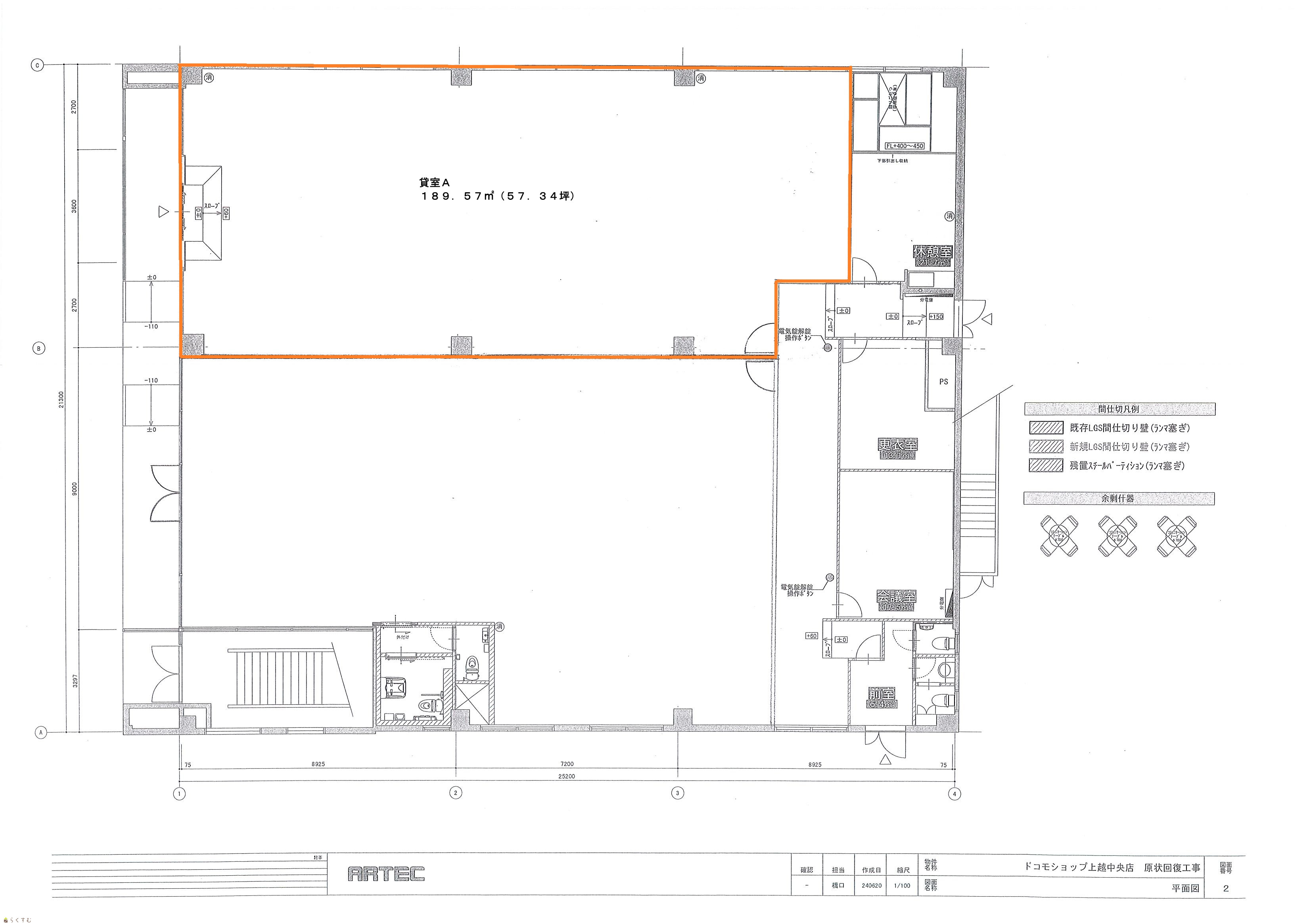 | 備考 | 共用部(休憩室、更衣室、会議室)の使用は要相談 間仕切壁設置工事後の引渡し(業種により要相談) 冬期間除雪費の負担あり 物件敷地内に別途駐車場あり(応相談) |