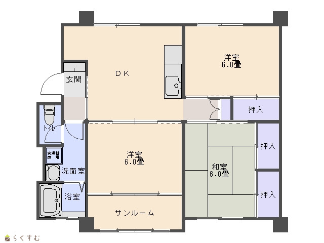 | 間取り | 3DK (和室:6畳、6畳) (洋室:6) DK8 |