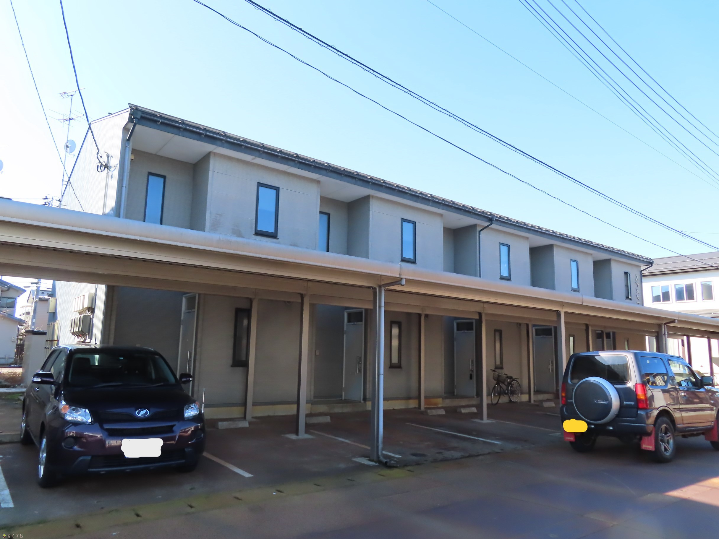 高気密高断熱のメゾネットタイプ。駐車場はカーポート付きで2台無料。