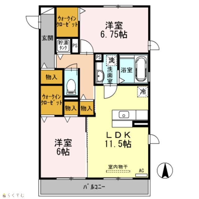 | 間取り | 2LDK (洋室:6.7、6) | ||