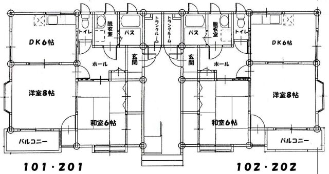 | 間取り | 2DK (和室:6畳) (洋室:8) DK6 追い焚き機能 ・ 各住戸専用物置有り |