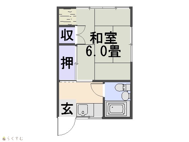 | 間取り | 1DK (和室:6畳) 水洗トイレ/洗濯機置場/ユニットバス/給湯/シャワー |