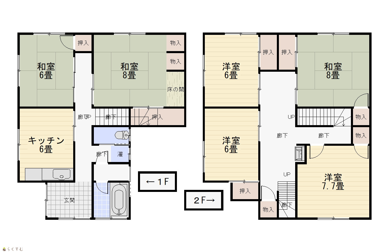 | 間取り | 6DK (和室:8畳、8畳、6畳) (洋室:7.7、6、6) DK6 |
