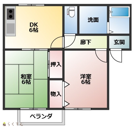 | 間取り | 2DK (和室:6畳) (洋室:8) | ||