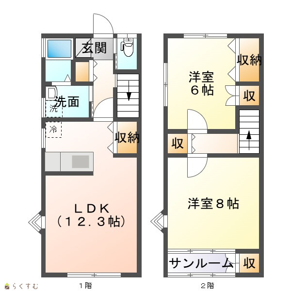| 所在階/階数 | 1階/2階 | 号室 | D号室 |