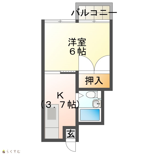 間取り 1K (洋室:6)
