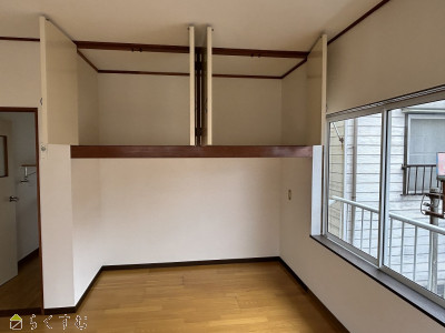 | 吊収納の下がベットスペース!残念なことに、冷蔵庫は台所に置けません。居室内に設置してください。 | |||