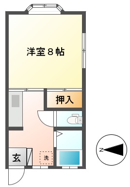 | 間取り | 1K (洋室:8) K4 B・T別室/追い焚き機能/洗濯機置場/給湯/エアコン |