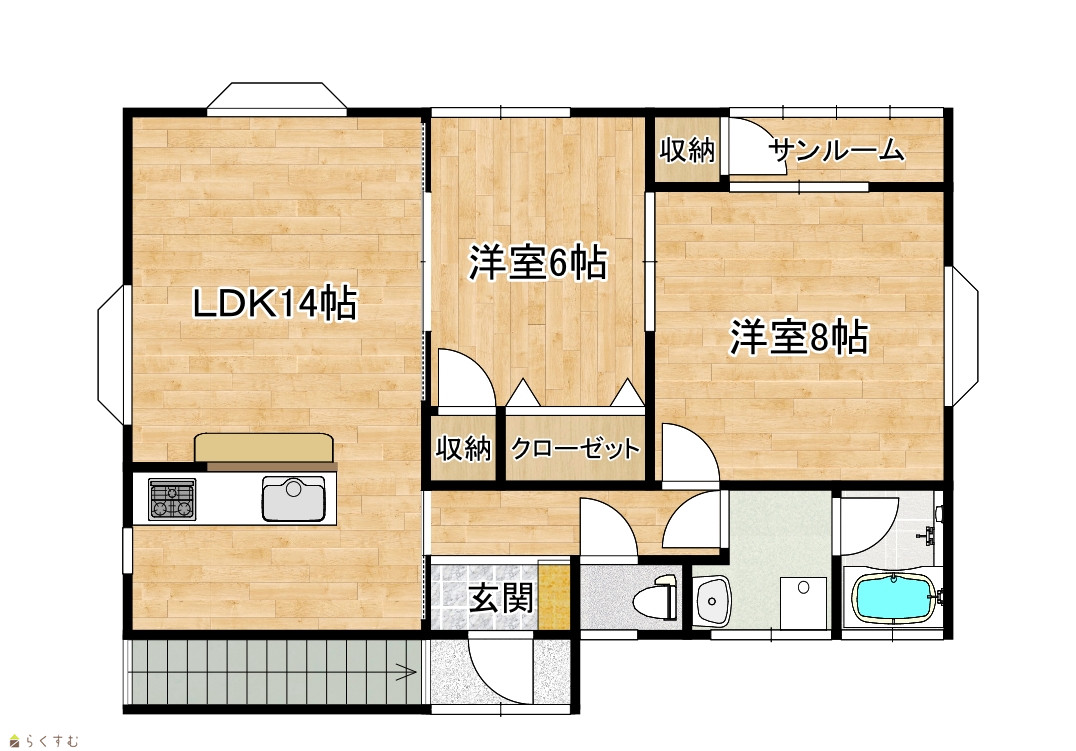 | 間取り | 2LDK (洋室:8、6) LDK14帖 |