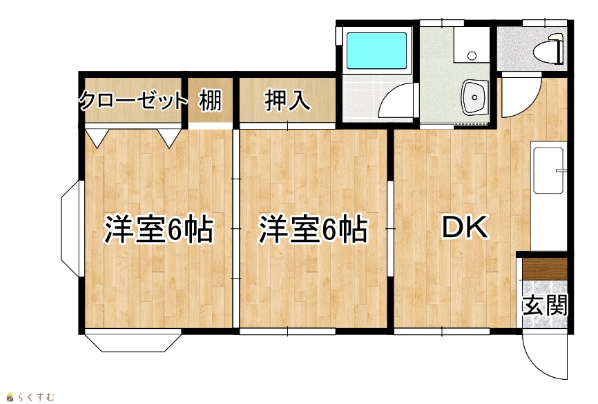 | 間取り | 2DK (洋室:6、6) DK6 |