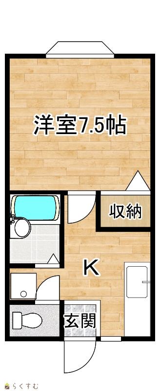 | 間取り | 1K (洋室:7.5) | ||