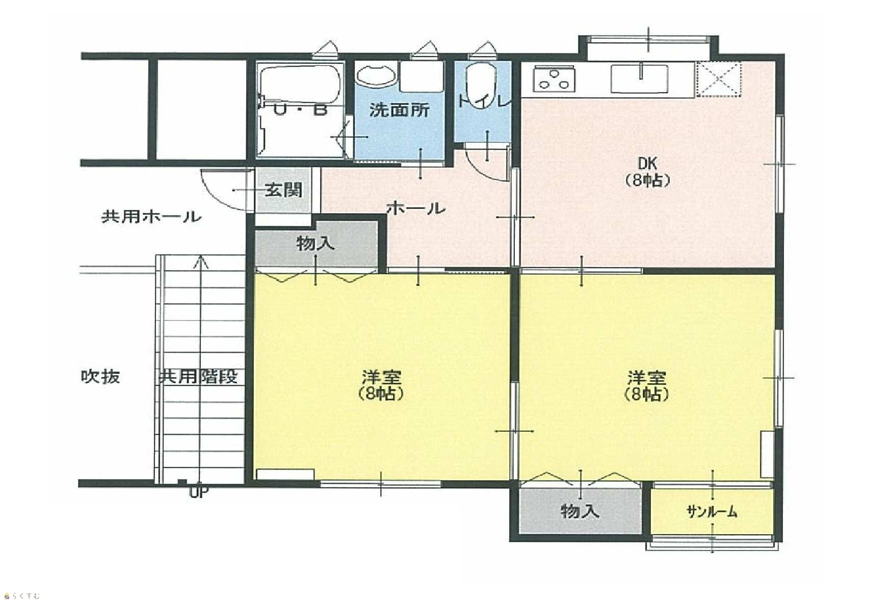 間取り 2DK (洋室:8、8)
