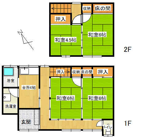 | 間取り | 4K (和室:6畳、6畳、6畳、4.5畳) | ||